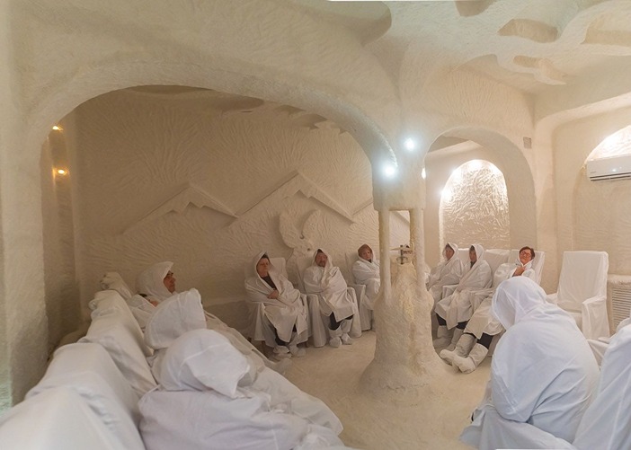 - Соляная пещера обеспечивает выраженный эффект и полную безопасность. При распылении мелкодисперсного раствора хлорида натрия частички проникают глубоко, вплоть до бронхов и легких. Процедура оказывает санирующий, противовоспалительный, противоотечный, отхаркивающий эффекты.